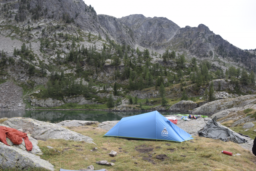 Je pose la toile tant bien que mal, après avoir planté les piquets à des dizaines d’endroits différents, me heurtant sans cesse à des cailloux, tout en me disant que vraiment, qui a pu avoir l’idée stupide de faire cette Grande Traversée des Alpes…